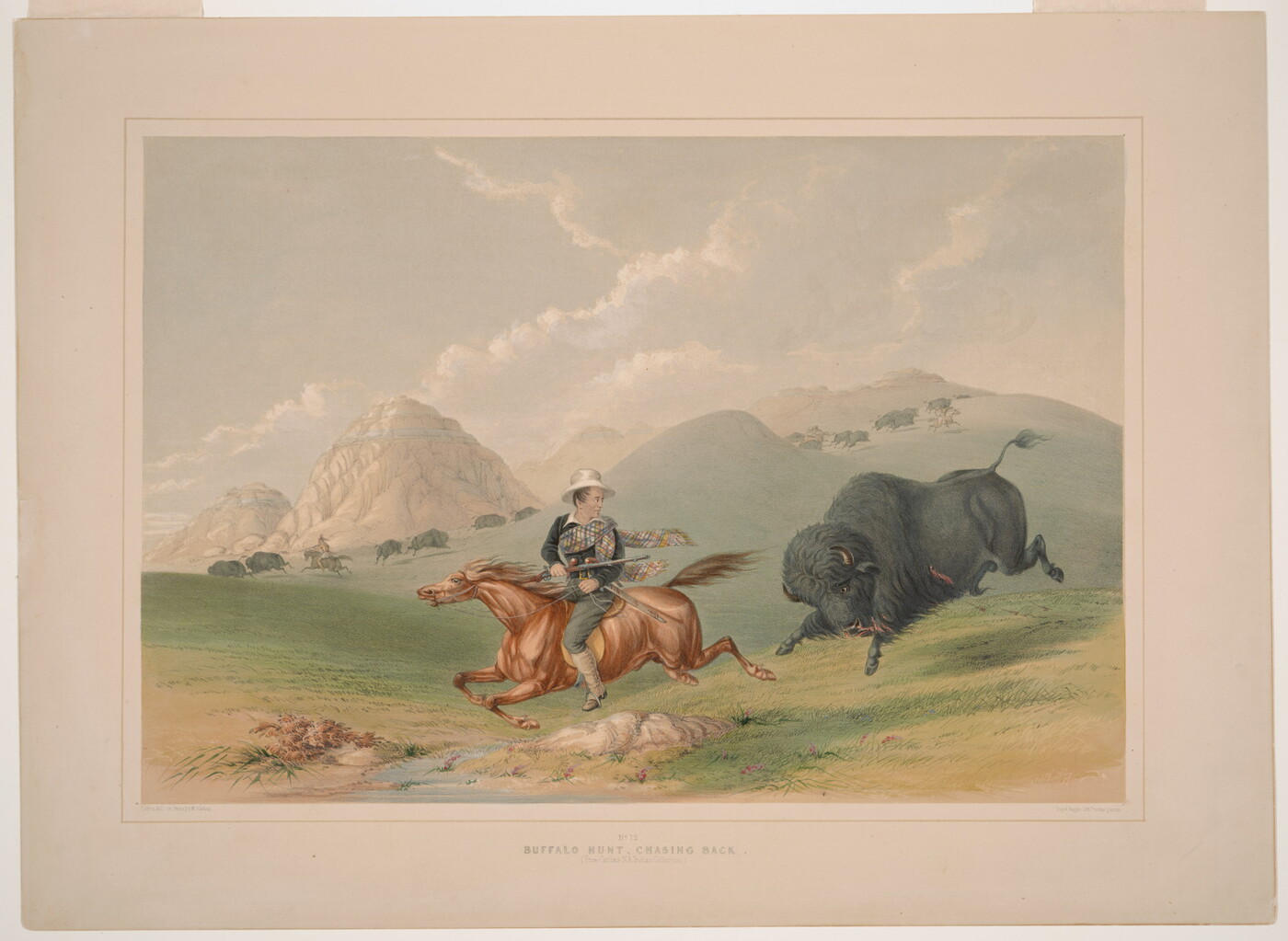 l.c.: N[o]. 12. \ BUFFALO HUNT, CHASING BACK. \ (From Catlin's N.A. Indian Collection.)