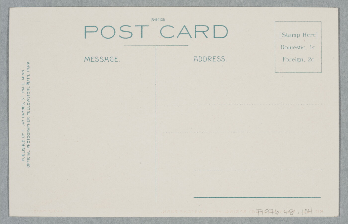 c.l. printed along left edge: PUBLISHED BY F. JAY HAYNES, ST. PAUL, MINN. \ OFFICIAL PHOTOGRAPHER YELLOWSTONE NAT'L PARK.