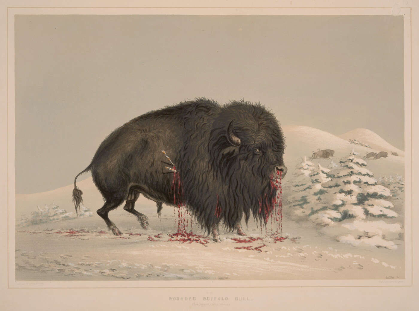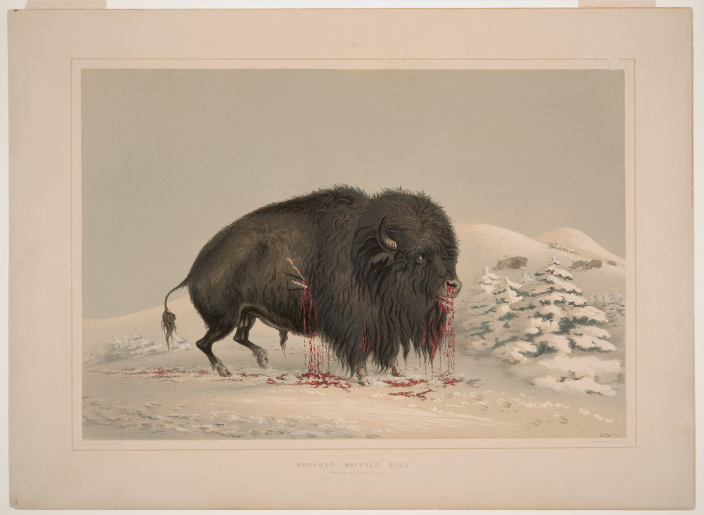 l.c.: N[o]. 16. \ WOUNDED BUFFALO BULL. \ (From Catlin's N.A. Indian Collection.)