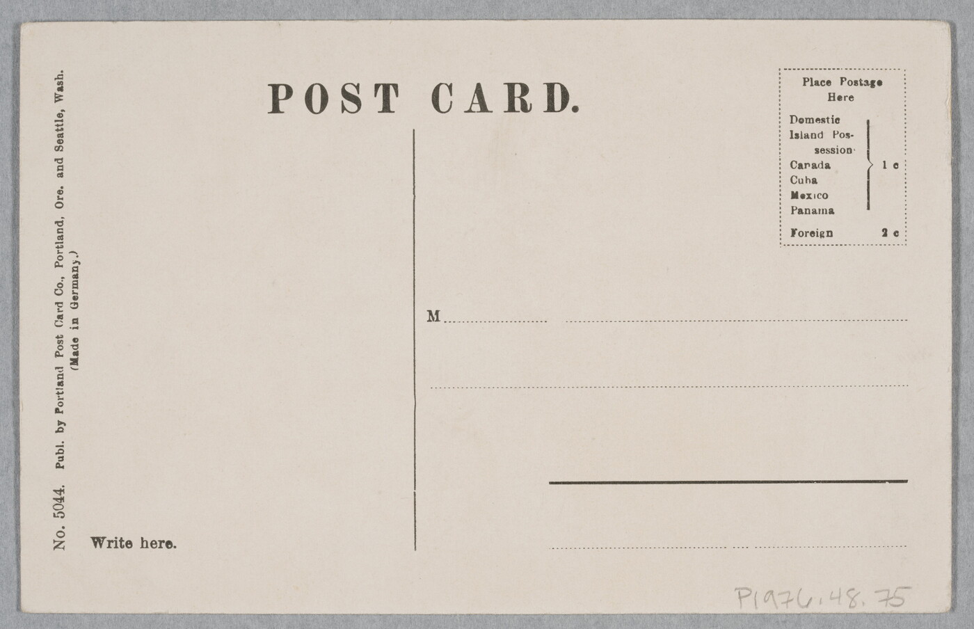 l.l. to u.l. printed along left edge: No. 5044. Publ. by Portland Post Card Co., Portland, Ore. and Seattle, Wash. \ (Made in Germany)