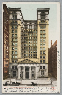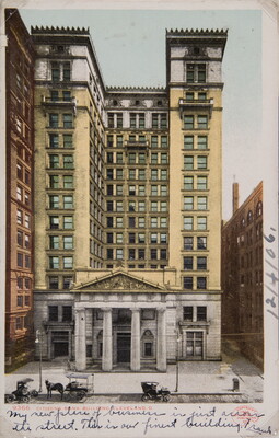 l.l. to l.r. in black ink, below image: My new place of business is just across \ the street. This is our finest building. Frank [underlined]