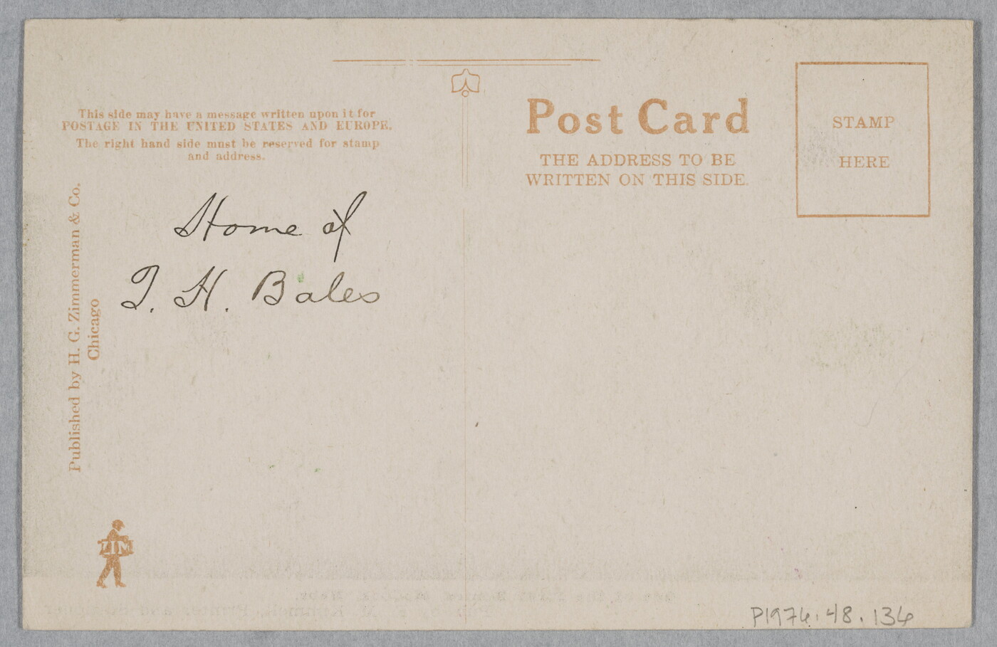 c.l. printed along left edge: Published by H.G. Zimmerman & Co. \ Chicago