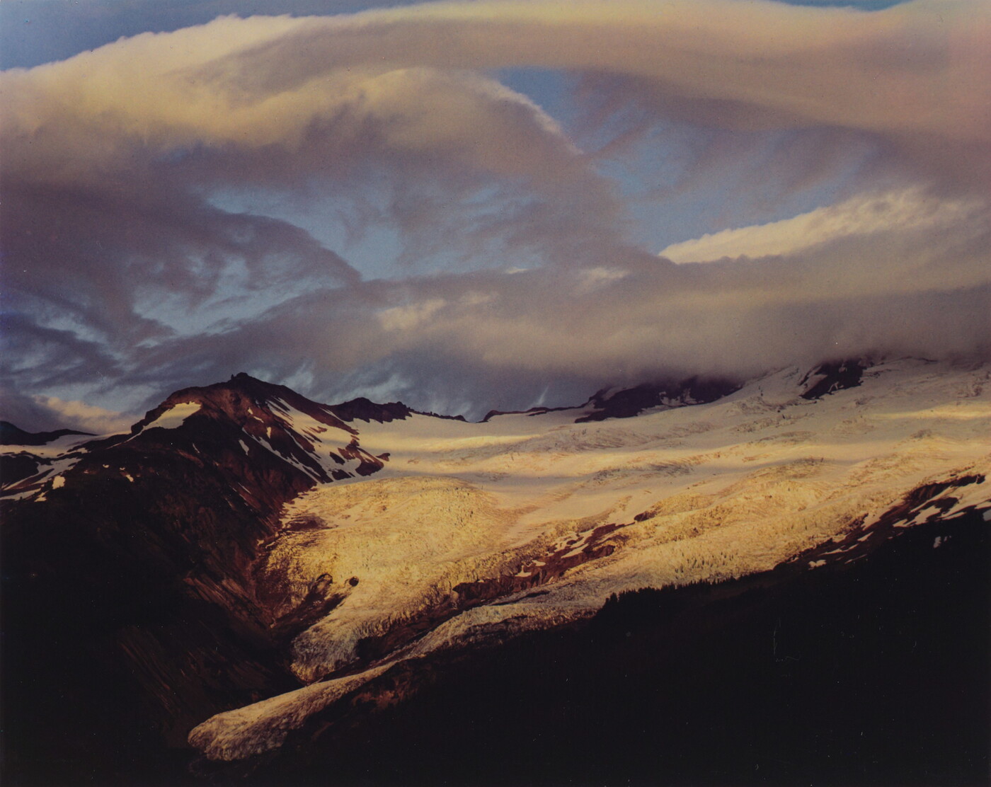 u.l. [stamp]: PHOTOGRAPH \ By \ ELIOT PORTER \ No. [in ink]: 75-570 \ [stamp]: Title [in ink]: Noctilucent clouds \ Mt. Baker, Washington