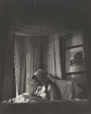 [Nursing mother in canopy bed]