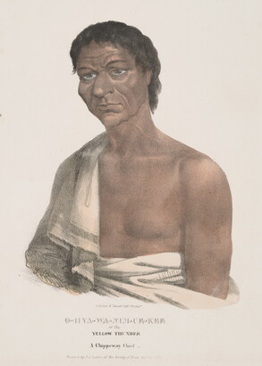 l.c.: Lehman & Duval Lith[r]. Philad[a]. \ O-HYA-WA-NIM-CE-KEE \ or the \ YELLOW THUNDER \ A Chippeway Chief.__ \ Painted by J.O. Lewis at the treaty of Fond du Lac 1826