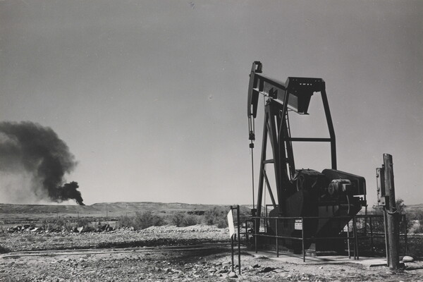 u.c. on paper label: [printed]: A PHOTOGRAPH BY \ LAURA GILPIN \SANTA FE, NEW MEXICO \ [typed]: OIL RIG 1963 \ From THE ENDURING NAVAHO \ University of Texas Press, Pub. 1968
