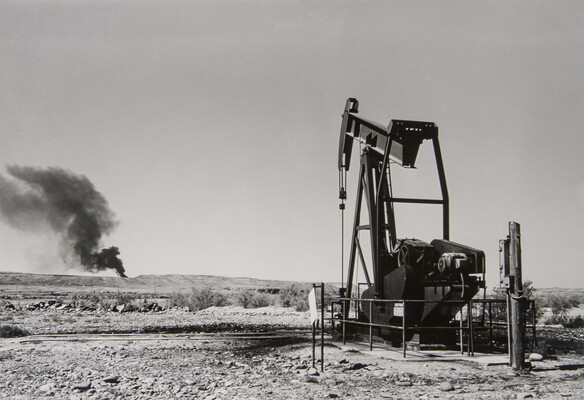 u.c. on paper label: [printed]: A PHOTOGRAPH BY \ LAURA GILPIN \ SANTA FE, NEW MEXICO \ [typed]: AN OIL WELL IN THE FOUR \ CORNERS AREA. \ 1959 \ from THE ENDURING NAVAHO \ UNIVERSITY OF TEXAS PRESS. PUB.