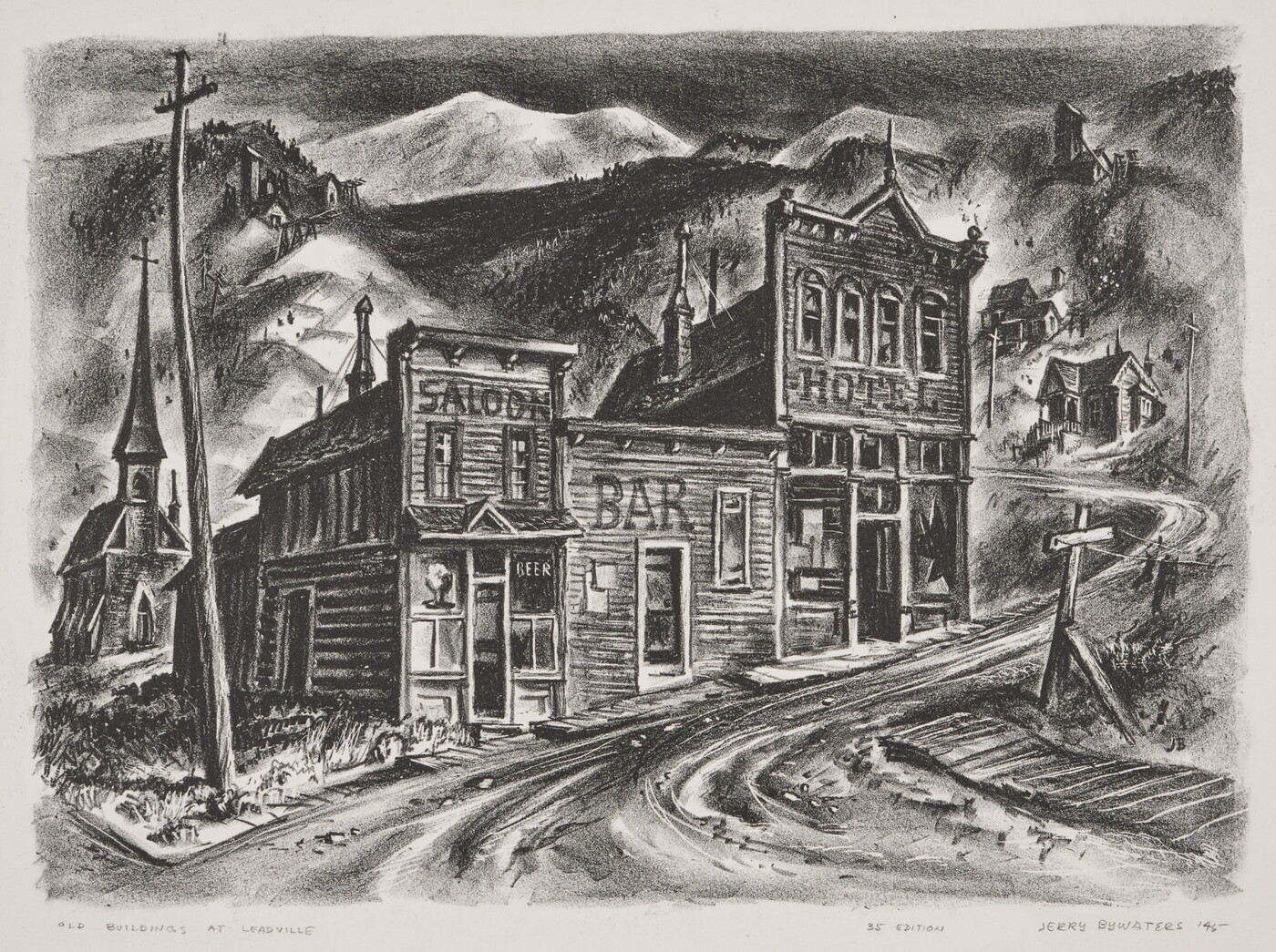 l.l. titled in graphite: OLD BUILDINGS AT LEADVILLE