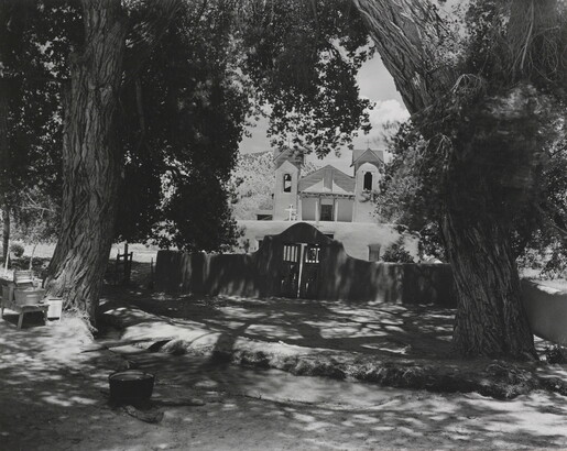 u.c. on paper label: [printed]: A : PHOTOGRAPH \ BY : LAURA : GILPIN \ TITLE [typed]: OLD COTTON WOODS. CHIMAYO. \ Copyright. \ [printed]: COLORADO : SPRINGS : COLORADO