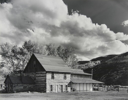 u.l. on paper label: [printed]: PHOTOGRAPHS \ BY LAURA GILPIN \ BOX 1173, SANTA FE, NEW MEXICO \ [typed]: THE OLD WAY STATION \ from RIO GRANDE, RIVER \ OF DESTINY. \ PRINT NO. 3.