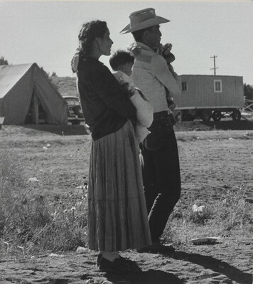 u.c. on paper label: [printed]: A PHOTOGRAPH BY \ LAURA GILPIN \ SANTA FE, NEW MEXICO \ [typed]: ONLOOKERS AT THE WINDOW ROCK FAIR. \ 1964 \ from THE ENDURING NAVAHO \ UNIVERSITY OF TEXAS PRESS, PUB.