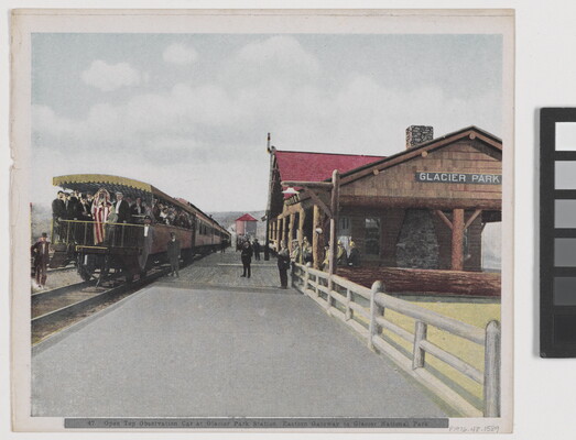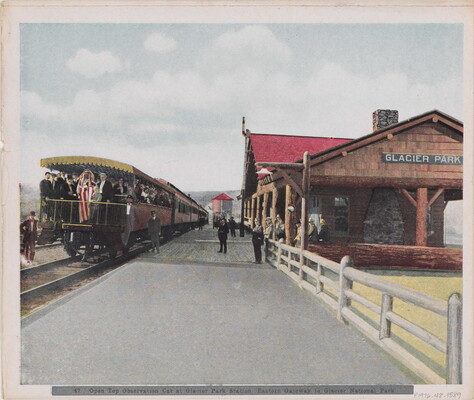 l.c. printed: 47. Open Top Observation Car at Glacier Park Station, Eastern Gateway to Glacier National Park