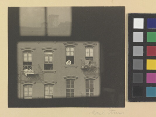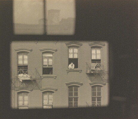 printed paper label: MUSEUM OF THE CITY OF NEW YORK \ "VIEWS OF NEW YORK - OLD AND NEW" \ Exhibited by \ PICTORIAL PHOTOGRAPHERS of AMERICA \ November 9th to November 23, 1936