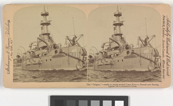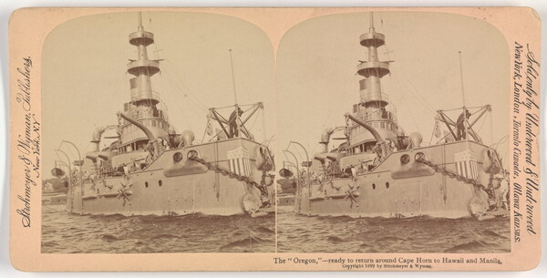 l.c. to l.r. printed: The "Oregon," -- ready to return around Cape Horn to Hawaii and Manilla. \ Copyright 1899 by Strohmeyer & Wyman.