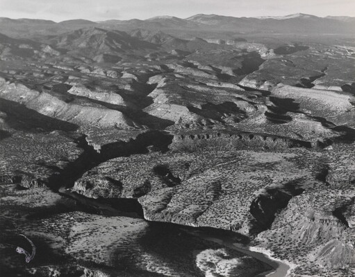 u.c. on paper label: [printed]: A PHOTOGRAPH BY \ LAURA GILPIN \SANTA FE, NEW MEXICO \ [typed]: THE PAJARITO PLATEAU \ from \ THE RIO GRANDE. RIVER OF \ DESTINY. \ Duell, Sloan & Pearce, Pub. \ 1946