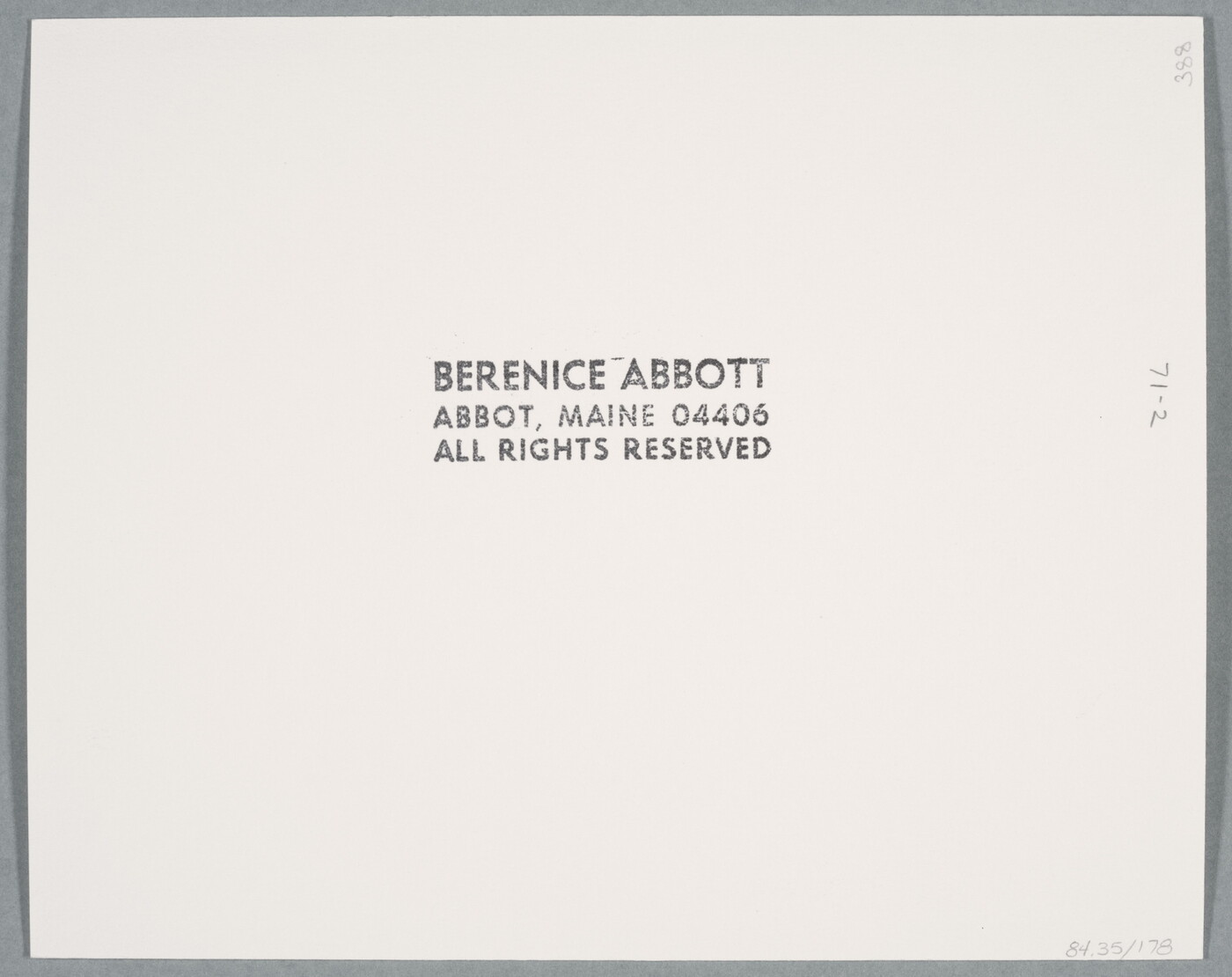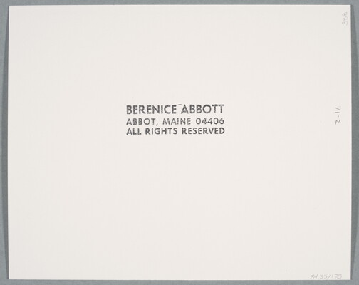 c. stamp: BERENICE ABBOTT \ ABBOT, MAINE 04406 \ ALL RIGHTS RESERVED