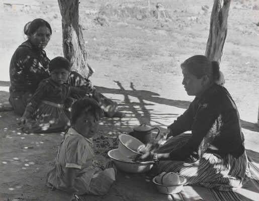 u.c. on paper label: [printed]: A PHOTOGRAPH BY \ LAURA GILPIN \ SANTA FE, NEW MEXICO \ [typed]: PAULINA'S SHELTER \ COVE AREA. 1953 \ from THE ENDURING NAVAHO \ UNIVERSITY OF TEXAS PRESS. PUB.