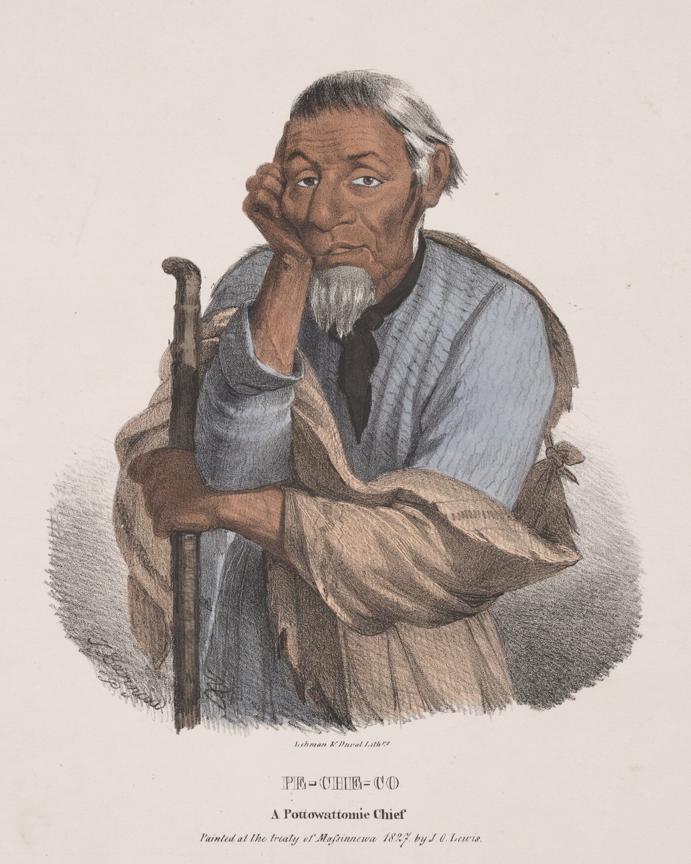 l.c.: Lehman & Duval Lith[rs]. \ PE-CHE-CO \ A Pottowattomie Chief \ Painted at the treaty of Massinnewa 1827.by J.O. Lewis.