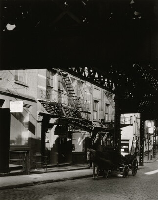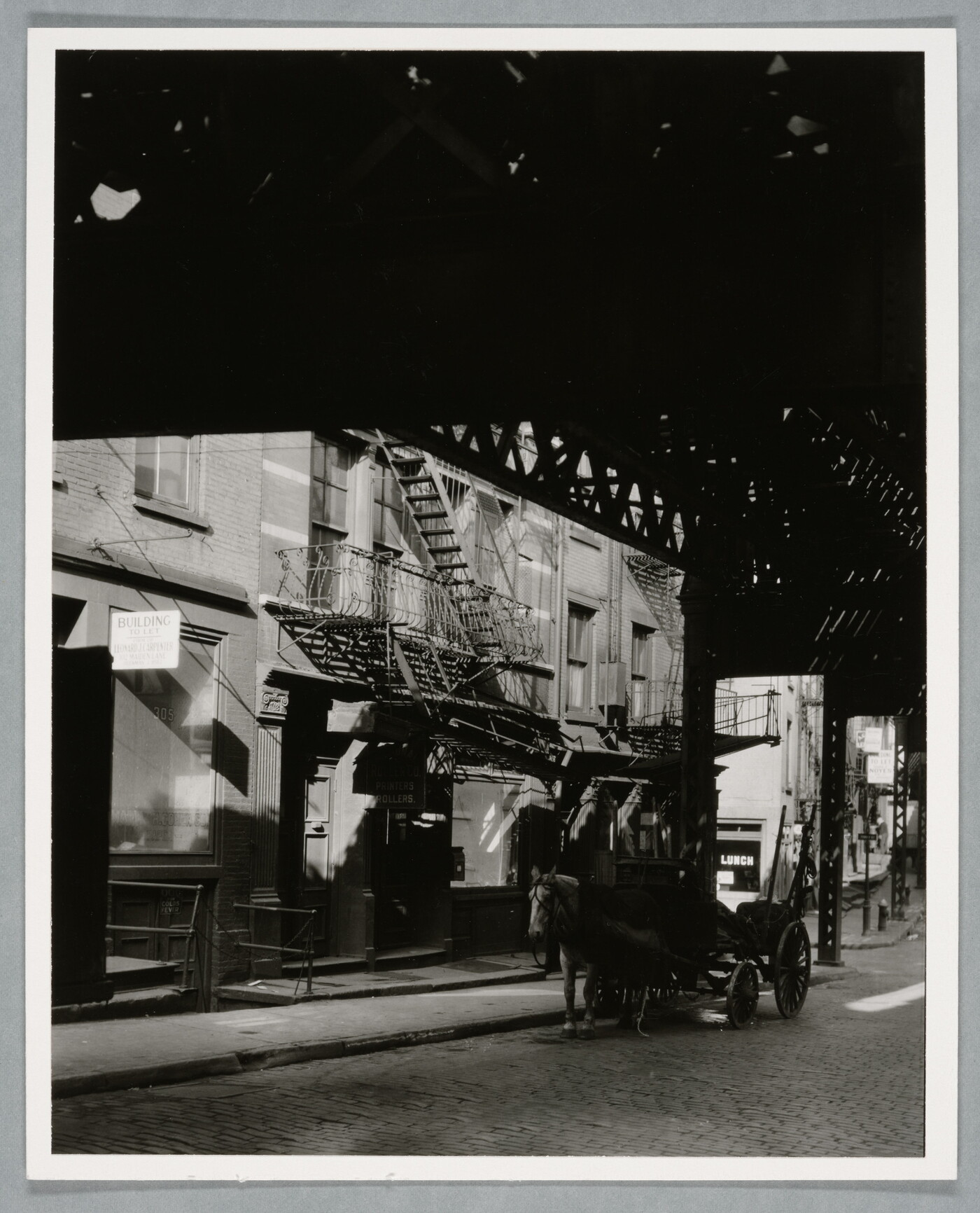 [Pearl Street, looking north under the elevated towards Ferry Street]