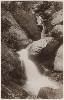 l.c. [typed on label]: William Henry Jackson \ "Peekaboo Falls" \ Cascade Canyon, Colorado \ #3344