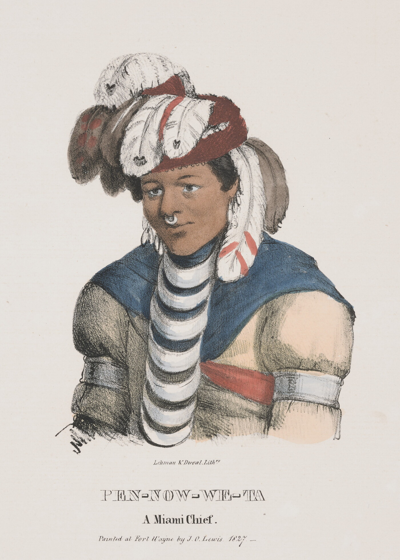 l.c.: Lehman & Duval Lith[rs]. \ PEN-NOW-WE-TA \ A Miami Chief. \ Painted at Fort Wayne by J.O. Lewis 1827.__