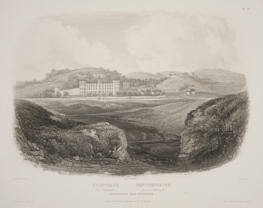 l.c.: Imp. de Bougeard \ ZUCHTHAUS PENITENTIARE \ bei Pittsburgh près de Pittsburgh \ PENITENTIARY NEAR PITTSBURG \ London published by Ackermann & Co. 96 Strand \ [blind stamp]