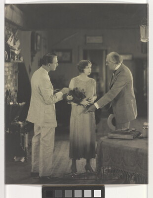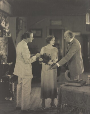 [Percy Marmont and Doris Kenyon speaking to older man, "Idle Tongues"]