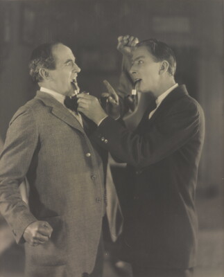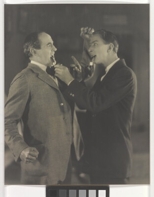 [Percy Marmont and older man arguing and smoking pipes, "Idle Tongues"]