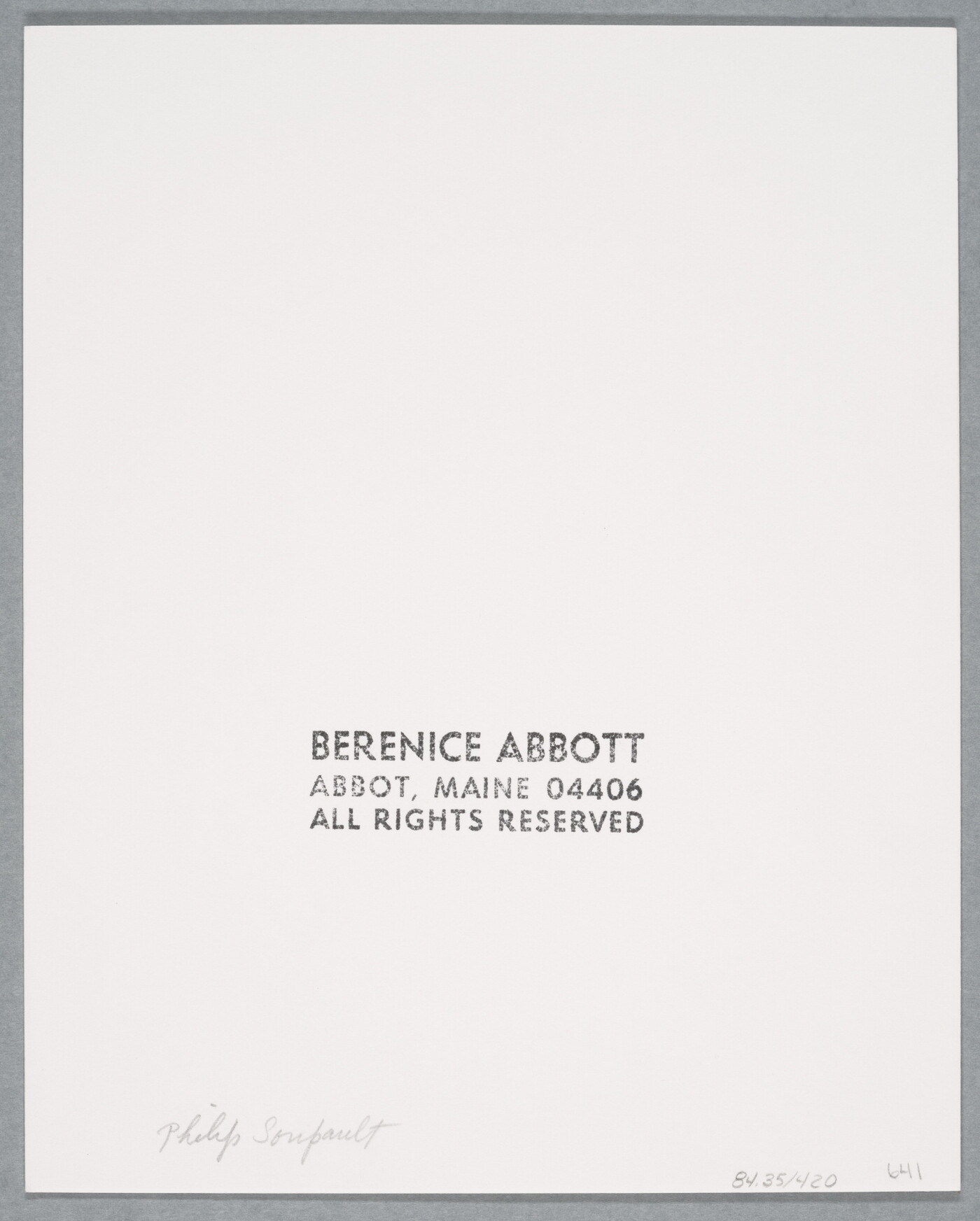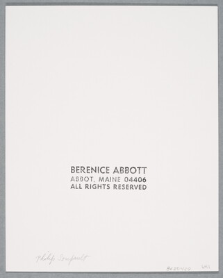 c. stamp: BERENICE ABBOTT \ ABBOT, MAINE 04406 \ ALL RIGHTS RESERVED