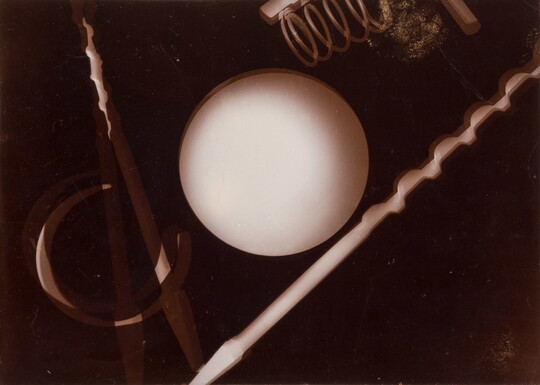 Instead, Jacobi moved a flashlight and sometimes a clear barrier, such as cellophane or glass, above a piece of light-sensitized paper. As the light shone through the barrier it warped and refracted, leaving behind traces of its presence through layered abstract designs. Working quickly and in the darkroom, Jacobi had only limited control over the final composition, so it wasn’t uncommon for her to produce dozens of prints before finding one that satisfied her.