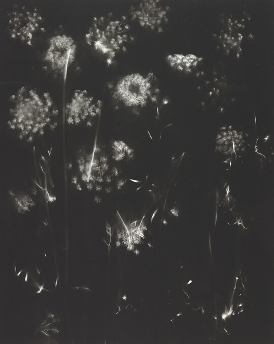Amid an acclaimed career in portrait photography that lasted eight decades, Jacobi spent a few invigorating years experimenting with abstract photography, about which she claimed that “the possibilities were limited only by one’s imagination.” Her images were made without cameras, but she called them “photogenics” instead of photograms because no objects touched the print’s surface.