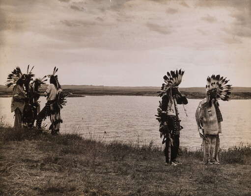 u.c. to c. in graphite, sideways: Sioux \ Chieftans waiting \ for parade to start