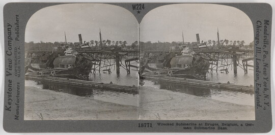 Wrecked Submarine at Bruges, Belgium, a German Submarine Base., ca. 1914-1918