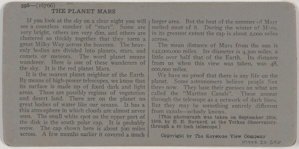 l.r. printed: 16766 - The Planet Mars. Copyright Yerkes Observatory.