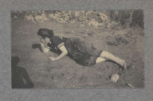 [Portrait of Clara Sipprell lying by Lake Ontario]