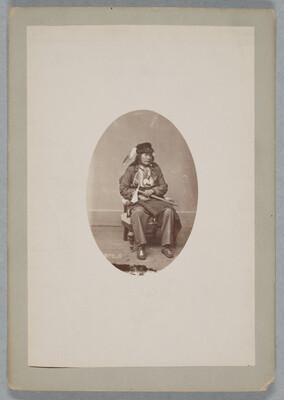 Portrait (Front) of Black Buffalo in Partial Military Uniform and Native Dress with Peace Medal and Holding Pipe-tomahawk