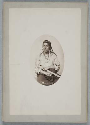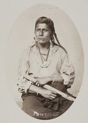 Portrait (Front) of Kot-Toox (Beaver) in Partial Native Dress with Ornaments and Peace Medal, Holding Pipe-Tomahawk