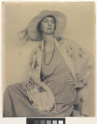 u.c. on paper label: [printed]: A PHOTOGRAPH BY \ LAURA GILPIN \ SANTA FE, NEW MEXICO \ [typed]: A PLATINUM PRINT \ PORTRAIT--MARGARET CARLSON \ 1921
