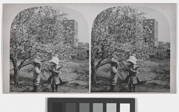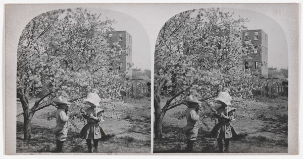 [Portrait of two children under a tree]