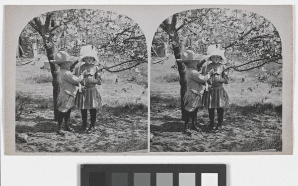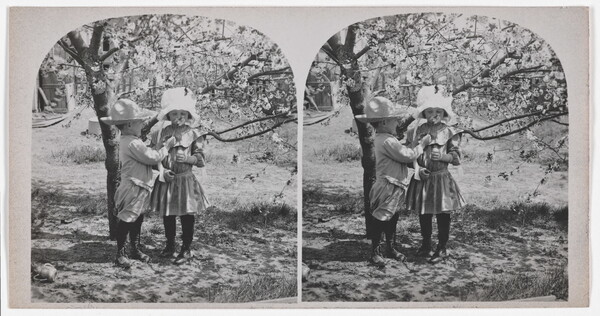 [Portrait of two children under a tree]