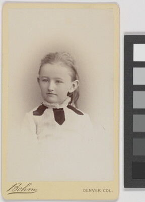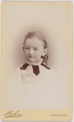 c. printed: Chas. Bohm \ Photographer \ 284 Fifteenth St. \ DENVER, COL. \ PORTRAITS \ IN CRAYON, WATER COLORS & INDIA INK \ A SPECIALTY. \ Negatives preserved. \ Duplicates may be obtained at any time.