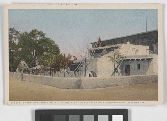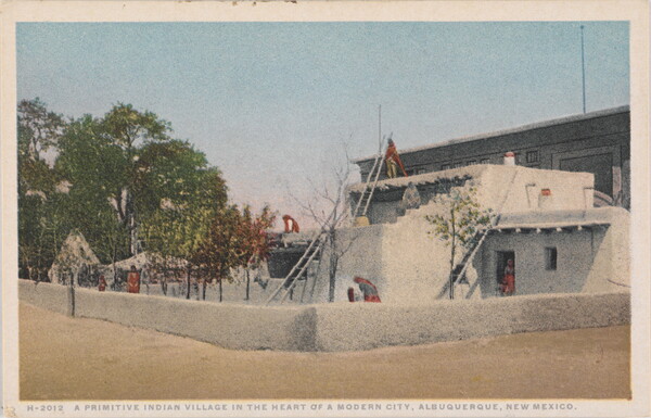l.l. to l.r. printed: H-2012 A PRIMITIVE INDIAN VILLAGE IN THE HEART OF A MODERN CITY, ALBUQUERQUE, NEW MEXICO.