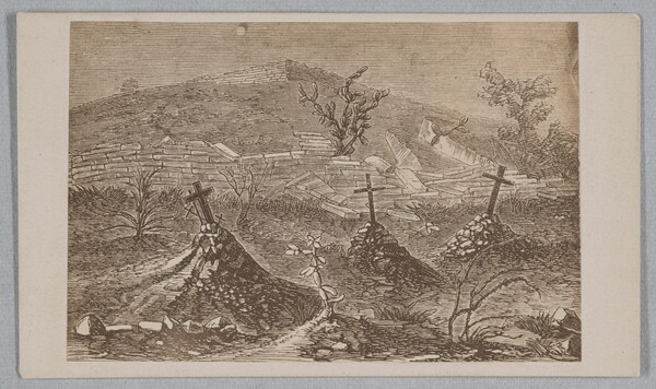 [Print of three graves marked by crosses]