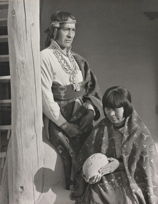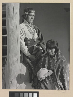 u.c. on paper label: [printed]: A PHOTOGRAPH \ By LAURA GILPIN \ COLORADO SPRINGS . COLORADO \ TITLE: [typed]: PUEBLO INDIANS. \ Illustration for \ RIO GRANDE-RIVER OF DESTINY. \ Not for reproduction.