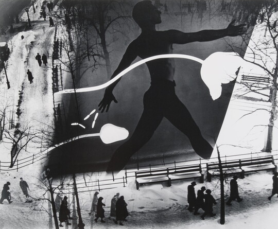 "Pure Energy and Neurotic Man--1941 (Light Drawing Photomontage)/Barbara Morgan \ Printed Archivally--1972/B.B.M. \ 19" x 15-1/8" on 27" x 22"