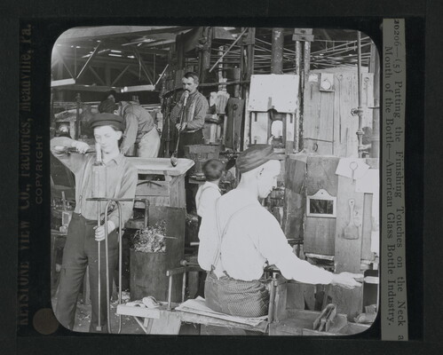 u.r. to l.r. printed along left edge: 20206---(5) Putting the Finishing Touches on the Neck and \ Mouth of the Bottle---American Glass Bottle Industry.