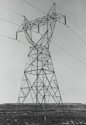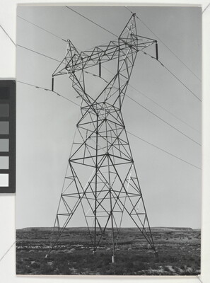 u.c. on paper label: [printed]: A PHOTOGRAPH BY \ LAURA GILPIN \ SANTA FE, NEW MEXICO \ [typed]: PYLON. CARRYING ELECTRICITY \ FROM THE GLEN CANYON DAM \ 1963 \ from THE ENDURING NAVAHO \ UNIVERSITY OF TEXAS PRESS. PUB.