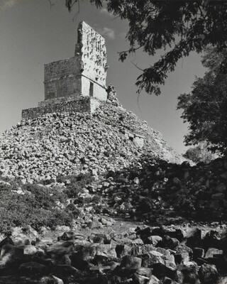 u.c. on paper label: [printed]: PHOTOGRAPHS \ BY LAURA GILPIN \ [BOX 1173 crossed out in ink], SANTA FE, NEW MEXICO \ [typed]: THE PYRAMID AT LABNA. YUCATAN