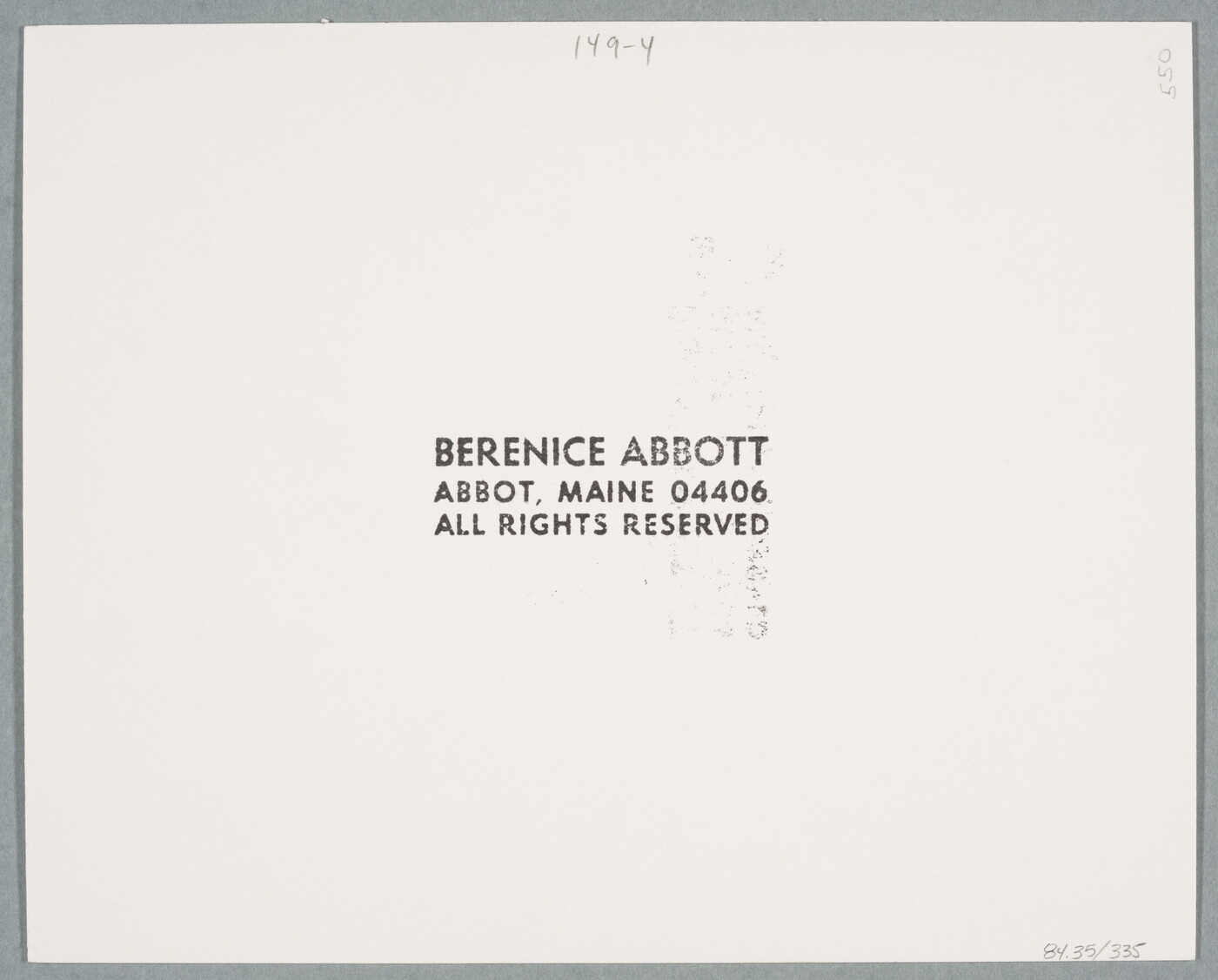 c. [stamp]: BERENICE ABBOTT \ ABBOT, MAINE 04406 \ ALL RIGHTS RESERVED