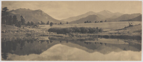 [Reflection of mountains in pond]
